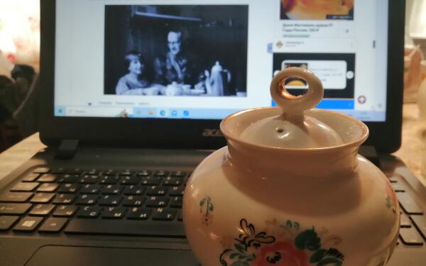 По поводу сервизов. Пьем с мелкой чай из маминого "приданого": дулевского чайного сервиза на шесть персон. На столе видны чашки, сухарница и сахарница. Последняя - единственное, что осталось "в живых" от сервиза на сегодняшний день. Заварочный чайник от другого сервиза - гэдээровского, кофейного. Мамин подарок на свадьбу. Кофе я не люблю и пью очень редко, а вот заварку, после Средней Азии, "белым" кипятком никогда не разбавляю - прямо из заварочного чайника разливаю по чашкам. Поэтому заварочник мне нужен относительно большой. Кофейник от гэдээровского сервиза для этой функции подошел идеально.
