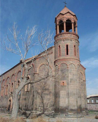 Месроп Маштоц умер в 440-м году и был похоронен в родовом имении Ваана Аматуни в селе Ошакан. Ученик Месропа Маштоца, Ваан Аматуни, в те годы управлял экономикой страны. Три года спустя Ваан Аматуни над могилой Маштоца построил купольную часовню из тесанных камней. В 1875-1879гг. католикос Геворг IV на месте часовни построил церковь св. Месроп Маштоц. Могила Месропа Маштоца находится под алтарем церкви. В восточной части возвышается двухэтажная колокольня (1884 год), которая в армянской архитектуре единственная по своей цилиндрообразной форме.