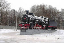 В г.Узловая Тульской области тоже рядом с ж/д вокзалом стоит паровоз. По-моему, клон курганского. С аналогичным текстом на табличке. Однако, традиция...