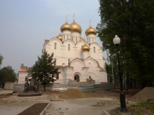 Достраивается Кафедральный Успенский собор, перед ним скульптурная группа "Святая Троица" .