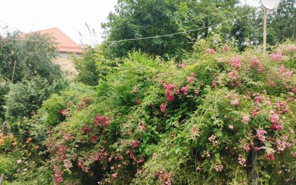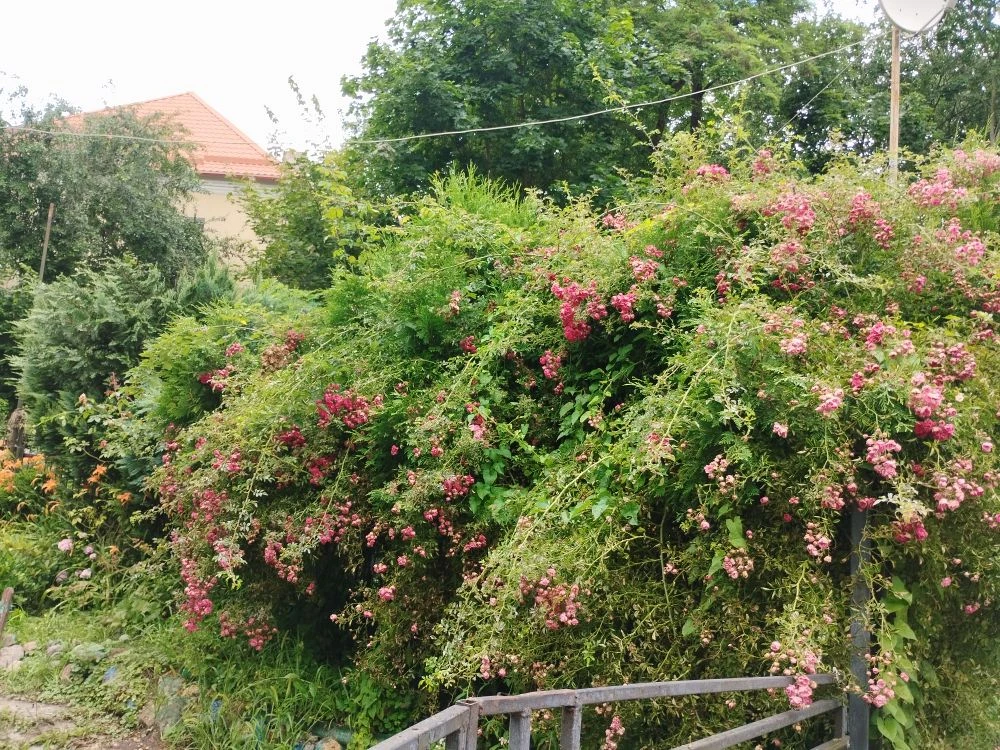 Прямо в центре города - почти первозданное царство природы. Домик совсем простой, а в палисаднике - буйство плетистых роз, почти отцветших и прекрасных.