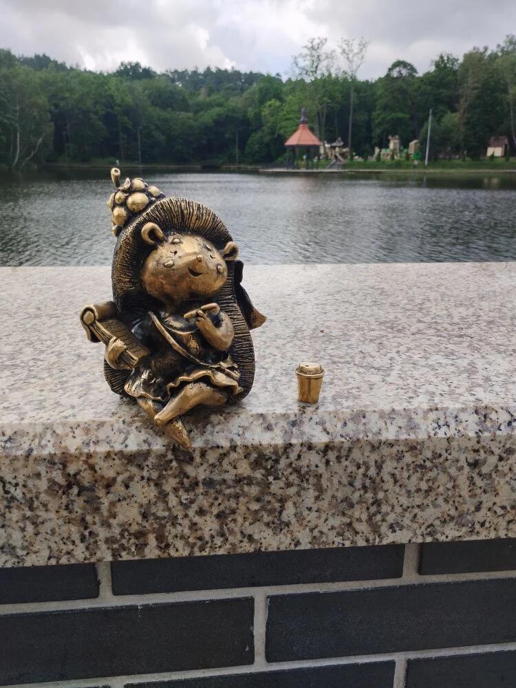 А забавные латунные светлоёжики только появились на Тихом озере в 2025 (в 2024 я их не видела) Всего их вокруг озера 12 мини-скульптур, я всех искать не стала, квесты уже не для меня. Да и сфотографировала всего двоих.