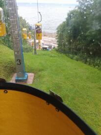 Канатная дорога в 2024 случилась в дождливый день, на удовольствии проехаться на ней это не сказалось. Кстати, пенсионерам скидка! Набережная вся на реконструкции, тем летом можно было, спустившись, пойти налево до конца забора и пробраться к морю.