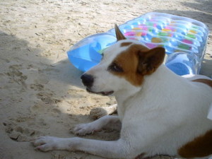 Вот, кстати, нашла фотку в архиве. Чудный тайский пес, устроивший сиесту под шезлонгом на пляже. Я предложила ему перекусить, но онт только глаз скосил лениво.