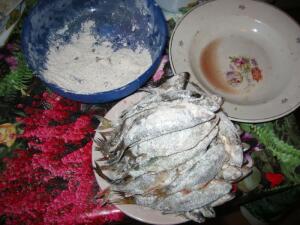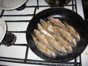 Рыбку чистим и потрошим, обваливаем в муке и зажариваем, как обычно.