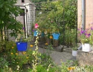 Кстати, это не у нас а у нашей соседки. Мы же виноград посадили на таких шпалерах перед летним домом, а у зимнего домика есть две декоративные стенки, по которым цветочки вьются.