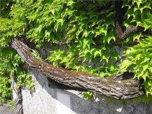 Но виноград очень красивый! Хоть он и цепляется за стену присосками, но не глубоко и ничего страшного со стеной не будет -- проверено нашей ландшафтной фирмой ;)