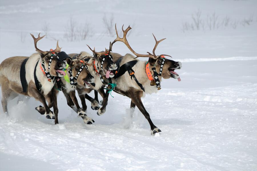 Интересно, что лапландские саамы и другие народы северной Евразии одомашнили оленя ещё около полутора тысяч лет назад. А вот аборигены Северной Америки этим почему-то не озаботились, хотя карибу (канадское название северного оленя) там водится ничуть не меньше. Тем не менее именно на этом континенте появилась самая знаменитая оленья упряжка, каждого оленя которой знают по имени…
