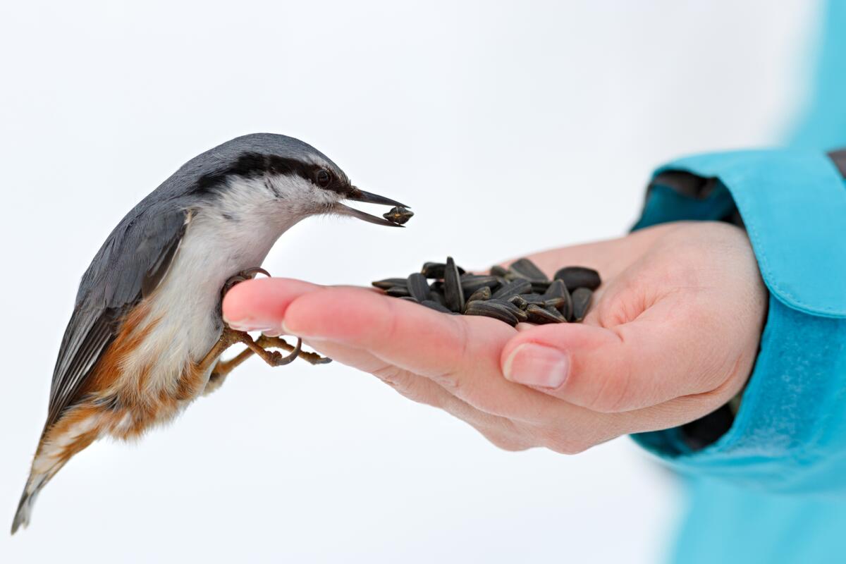 Это можно устроить, если прикормить пернатых, живущих рядом с жилищем людей или обитающих в садах, парках и ближайшей лесополосе. Для этого нужно выбрать любимое лакомство каждого.