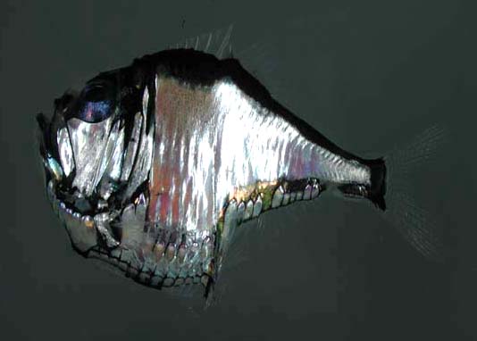 Так рыба-топор излучает зелено-синий свет, такой же, как и освещение морских глубин, поэтому практически незаметна для хищников. Креветки имеют яркую красную окраску, но в сине-зеленом освещении они сливаются с окружающим миром и незаметны для хищников.