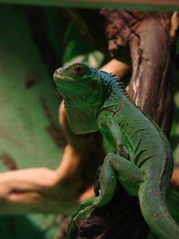 Главное — обеспечить игуану самым необходимым — подходящей едой, по возможности разнообразной каждый день, водой в аквариуме, из которого можно и напиться, и поплавать там, а также лампами дополнительного обогрева в террариуме (достаточно большом), т.к. эта зверушка — выходец из жарких стран. Ну и ещё одно необходимое условие существования игуаны — это наличие в её доме дерева для лазания. Это может быть какая-нибудь устойчивая живописная коряга, толстая ветка, деревяшка, по которой животное могло бы и лазать, и просто сидеть на ней, ведь в природе игуаны ведут древесный образ жизни.