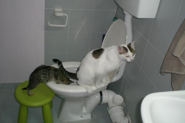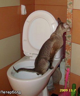 А про унитаз -- знаете, это очень удобно, когда кошка ходит в унитаз. Особенно в малогабаритном санузле! Я уж молчу об экономии на наполнителе для лотка. Смыл -- и порядок!
