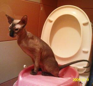 Маргарита Лависта, научить можно любую породу,вот заключительный этап обучения.Это Ясень дель Ирис-да же на выставках его приходиться носить на унитаз,ходить в лоток он не умеет!!