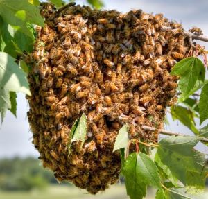На этой фотографии произошло как раз то, о чем я упоминула в статье - матка вылетела из улья, и все пчелы последовали за ней, опустошая улей. Для пчеловода это большой убыток, потеря целой семьи, если он не увидит это вовремя и не посадит всех пчел обратно в улей, потому что через некоторое время, посидя так на ветке, они улетят искать себе пристанища. Вот такие пчелы!
