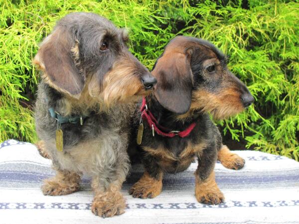 Две собаки: такса и недотакса)))) Недотакса - это смесь разных пород, но размеры как у стандартной таксы, с той лишь разницей, что ноги не такие короткие. Обе умнички. Но первая - Мила, скорее всего уже взрослая и не бесится как Рада-Торнада)))) Кстати, они отзываются на "кыс-кыс-кыс".