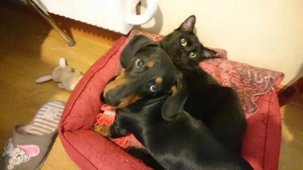 Ну как сгрызла, погрызла. Милка любит воровать с тарелки. Приходится защищать человеческую пищу, намазав по краю горчицу. Спят с нами. Ну не смогли им отказать. Поэтому приходится спать на самом краешке кровати. А если вдруг приспичит ночью встать, по возвращении обнаруживаешь Милку на подушке.И не смотря на все безобразия - очень умные, послушные (ну ,как все дети), знают команды. Заводите такс!!!
