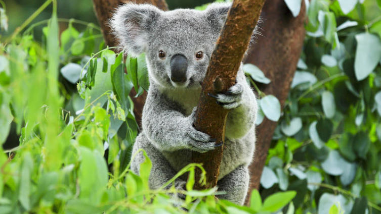 Ничего кроме эвкалиптовых листьев коалы не едят. Этим и объясняют их медлительность. Такая еда содержит очень мало белка, поэтому и скорость обмена веществ у этих пушистых зверьков почти в два раза ниже, чем у большинства других млекопитающих. В день коала съедает в среднем килограмм листьев.