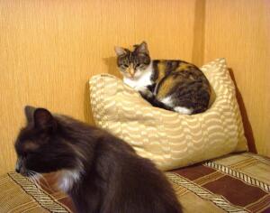 Анна Мартынова, последнюю кошку мне подкинули в марте, сиамская-но не чисто, вообще-то у меня все безпородистые.Так вот эта последняя постоянно враждует со взрослой кошкой, причем первая начинает взрослая,а мелкая (она самая маленькая и худая) пытается защищаться.Вот такая война у них идет , причем котам новая кошка по-барабану, они ее как свою приняли.Как говорит мой муж, женские скандалы, они и у кошек бывают.Ну посмотрим как дальше будет.А еще у нас на помойке живут семь кошек и котов, я их тоже постоянно кормлю, так теперь соседи стали их тоже подкармливать, а то каждый вечер я на помойку с едой для кошек хожу, а соседям наверно совестно стало, что иностранка их бездомных кошек кормит, так теперь смотрю постоянно миски полные с едой стоят, кто рыбу, кто мясо, вообщем кошки бездомные смотрю отъелись, а то раньше одни ребра торчали.Теперь у меня соседки все время спрашивают, а когда я их кормила,а не видела ли я вода у них налита или они нальют, а вот полосатый кот куда-то пропал и т.д.Смотришь бездушные поленья и в людей превратяться!