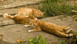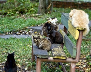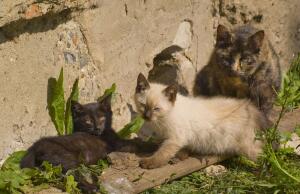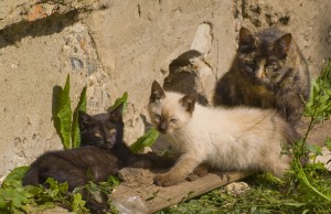 Дворовые кошки. Входя во двор и увидев одного маленького котеночка, лучше не говорить: кис-кис-кис. Сбежится все стадо.