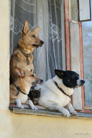 В прошлом году сфотографировала, когда с сыном из садика шли. Так в течении года по очереди вижу чуть ли не каждый день эту живность в окне. Такие славняги.