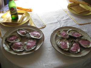 Для омаров идет хороший соус из растопленного сливочного масла с чесноком - просто макать кусочки для сочности. Но вот я попробовала соус, который я даю к устрицам: красный хрен пополам с майонезом и немного лимонного соку. Даже лучше чем с маслом получается, вкус свежее и тоньше. Сейчас попробую найти видок.