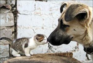 Сейчас той-терьер и кошка неизвестной породы. Тоже неплохо уживаются. Может потому что собачка по размерам меньше. Кошка не забывает, когда не видим, выдать оплеуху. Бестия и проказница.