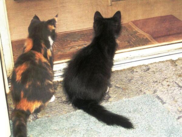 Ваши киски - очень счастливые. Живут в собственном доме, гуляют на свежем воздухе, охотяться на мышек.Мы выходим гулять во двор на поводке. Вокруг нас 2 га собственной земли, но выпустить котят одних, опасно. Их может укусить змея, либо пришлый койот может позавтракать нашими пушистиками. Кругом - дикая природа в первозданном виде.Котика мы назвали Такс.