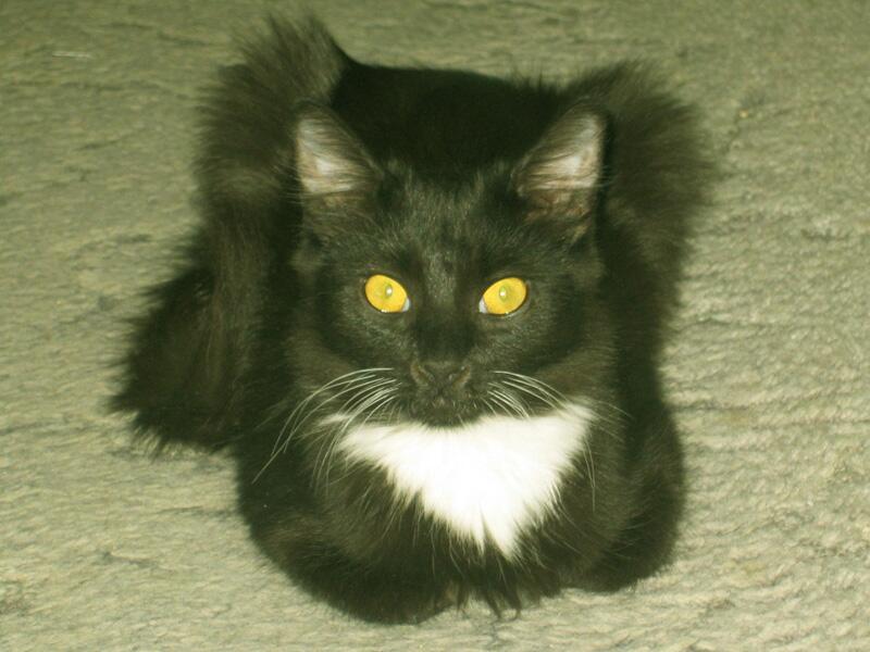 Первым мы «окрестили» черненького котенка. Он выглядел, как джентльмен, одетый в черный смокинг и белую рубашку со стоячим воротником, для полноты картины не хватало только галстука — бабочки на шее! Мы его назвали Такс (от английского Tuxedo — смокинг).