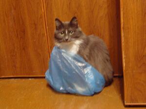 ой, какая прелесть! Интересно, почему у некоторых кисок такая любовь к пластиковым пакетам? Наша Соня, когда видит пустой пакет, кидается к нему и пытается "углубиться в его недра". Выглядет это невероятно смешно. Спасибо вам за фотографию.