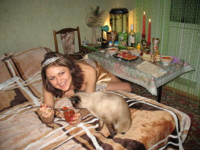 4. Сиамы на 80% питаются любовью и только на 20% пищей физической. Проснувшись утром, он откажется принимать пищу, пока вы его не поласкаете минут 10 как минимум. После этой прелюдии удовлетворенный кот пойдет к своим мисочкам, а вы сможете заняться утренним туалетом.