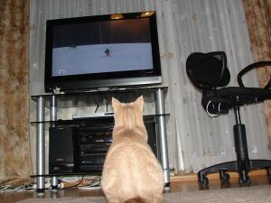 У вас тоже есть сравнительные наблюдения: кот Атос и ваша теперешняя любимица. Почему одни кошки смотрят ТВ взахлеб, а другим он "до фонаря" - сказать трудно.