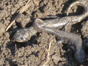 В огородном клубе копали свой участок и вот накопали.Я думаю это тритоны. Взяли на лопату и отнесли к воде.