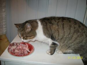 вы правы - Мяо уже меня выдрессировал. По поводу сухого корма. Вначале я кормил кота сухим кормом. Он стал расплываться, как на дрожжах. Позвонил другу-ветеринару, тот сказал, чтобы срочно убрал сухой корм из рациона и перешел на кошачьи консервы.Вот тут у нас с Мяо разгорелась война. Он отказывался есть эти консервы (перепробовали все), вопил день и ночь, требуя знакомую пищу. Пришлось отучать постепенно. За пару месяцев перешли полностью на консервы, про сухой корм он и не вспоминает. После этого лишний вес ушел, кот стройный, веселый и здоровый.