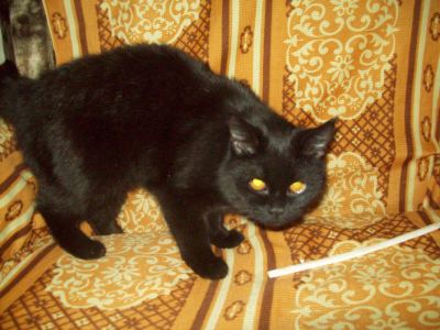 Об"явила себя террористкой и терроризирует население нашей квартиры. Жена с дочерью боятся по коридору пройтись, обязательно в каком нибудь углу караулит вцепится и укусит за ногу. Но больше всего достаётся собачке. Она её меньше ростом, всю замордовала её. Даже на фото, готова напасть.