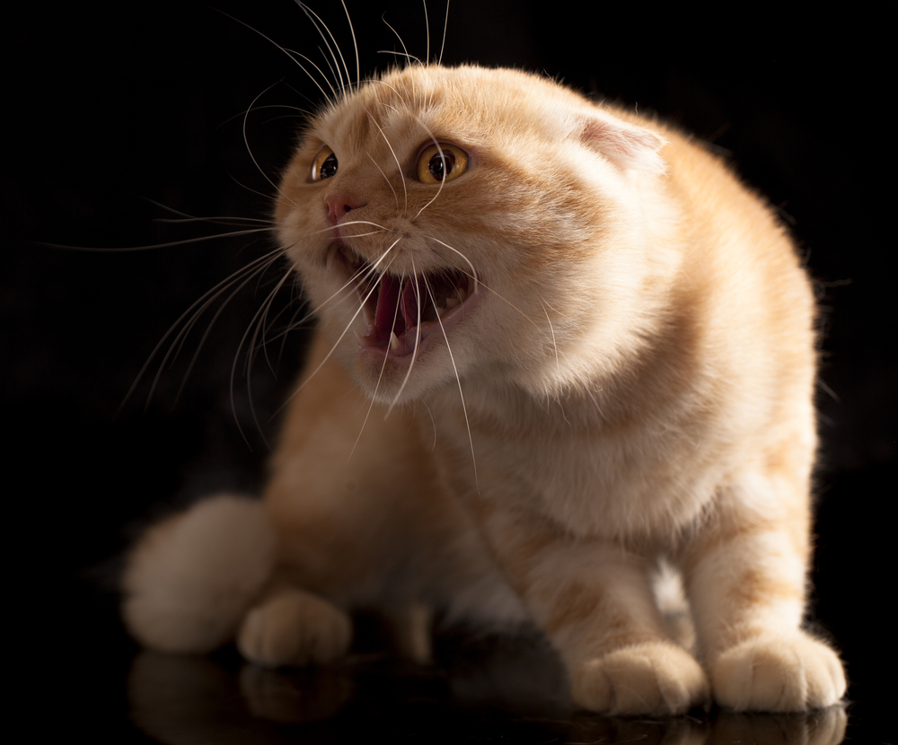 Кот широко раскрывает рот и начинает шипеть — это серьезная угроза, кто-то сейчас получит хороший отпор. Лучше оставить шипящего кота в покое, чтобы он пришел в себя от потрясения. Тихое повизгивание или короткое «мяу» — способ общения с другими животными.