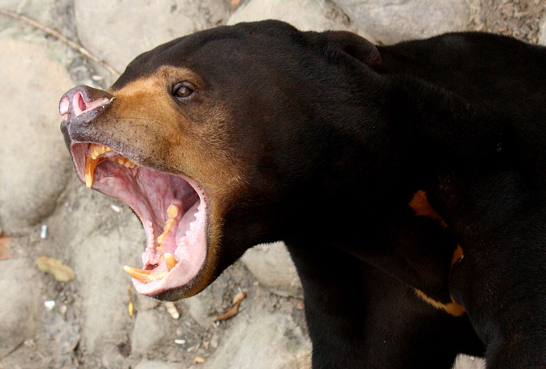 По соседству с губачом — на полуострове Индокитай — живёт медведь малайский, тоже весьма примечательный. Во-первых, он самый маленький из медвежьих (длина — 110−140 см, вес — до 65 кг). Во-вторых, самый нелохматый — шерсть у него короткая, гладкая и блестящая (сквозь неё проявляются даже кожные складки). В дополнение морда этого медведя украшена оранжеватым пятном, а грудь — такой же оранжеватой манишкой. Очень «аккуратный» образ нарушают лишь солидные крючковатые когти, необходимые для лазанья по деревьям.