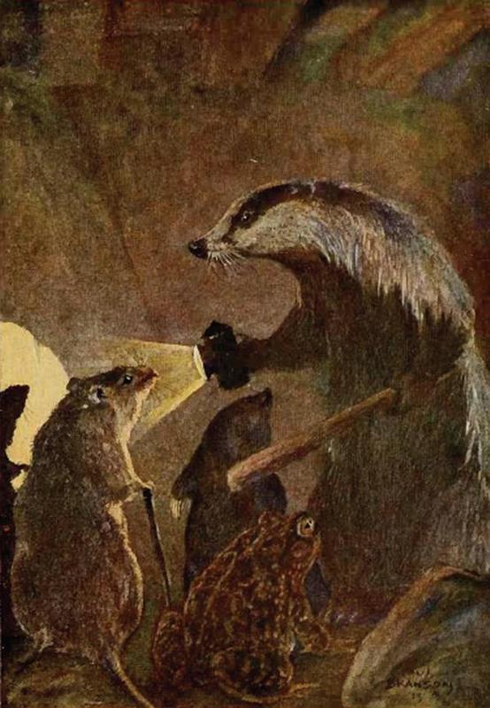 — Барсук, дружище! Идите к нам! — позвал Крыс. Барсук пробежал было шаг или два, затем буркнул: «Гэ, да тут целая компания! «- развернулся и исчез.
