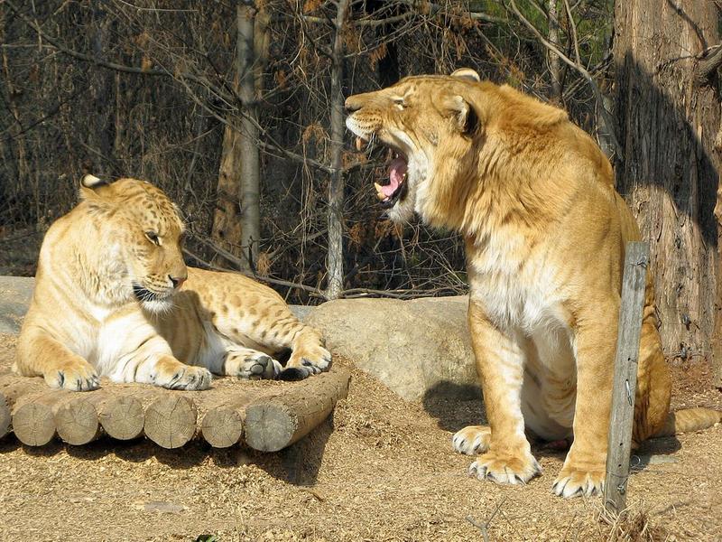 Львята (как и детёныши однотонных каракала и пумы) рождаются с тёмными розетками на шкуре. Тут надо отметить, что львы в условиях неволи способны скрещиваться с другими крупными кошками — тиграми, леопардами и ягуарами. Один раз удалось получить гибрид аж из трёх разных видов, скрестив льва с ягопардом (потомком ягуара и леопарда)…