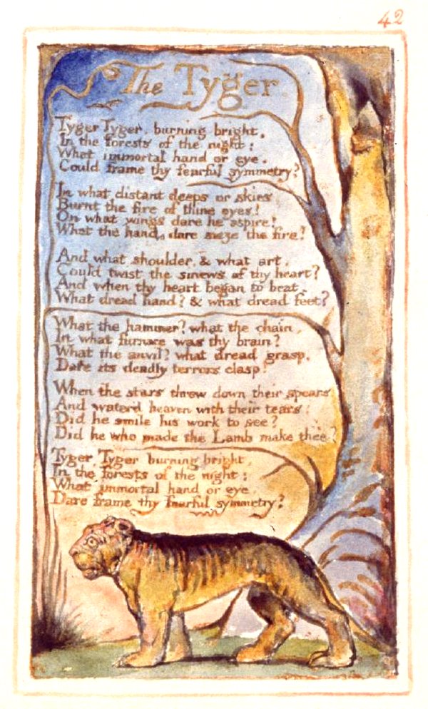 В том же стихе Блейк задаётся вполне естественным для христианина вопросом — неужели одна и та же Божественная Длань сотворила и кроткого Агнца, и этого свирепого убийцу? Недаром строчки «Tyger! Tyger! burning bright…» цитирует в виде некоего «оправдания» маньяк Красный Джон в сериале «Менталист».