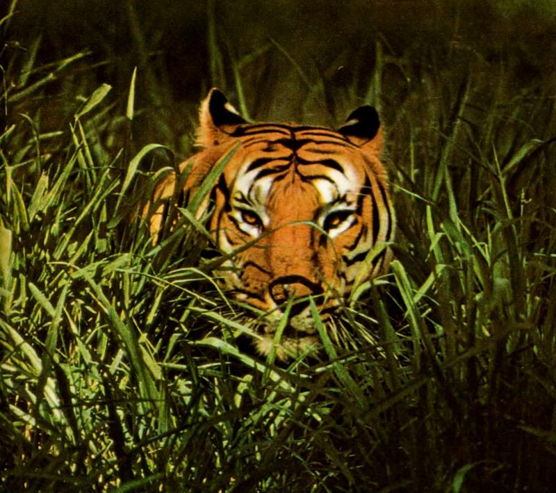 Казалось бы, зачем такому этому хищнику столь кричащая окраска? Но это она в зоопарках — кричащая, а в тропических зарослях и густой траве, где господствуют блики и полутени — это прекрасная маскировка. Индийский охотовед К. Сингх писал, что порой быстрее унюхаешь тигра, чем его увидишь.
