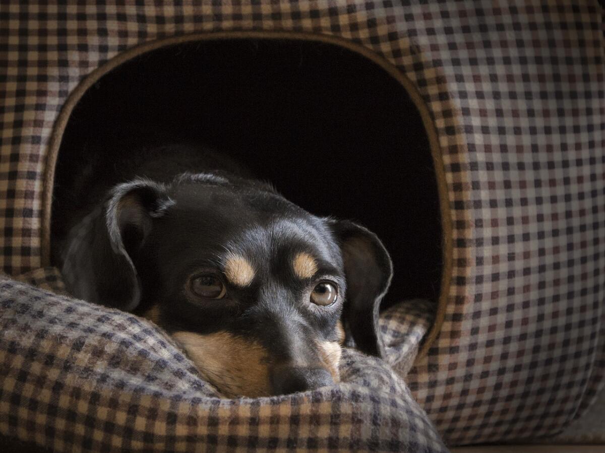 С помощью такой ткани, кстати, можно сшить не только большой вольер, но также домик, лежанку или целый диван. Только посмотрите, как сладко этот пёс сопит на собственном диванчике!