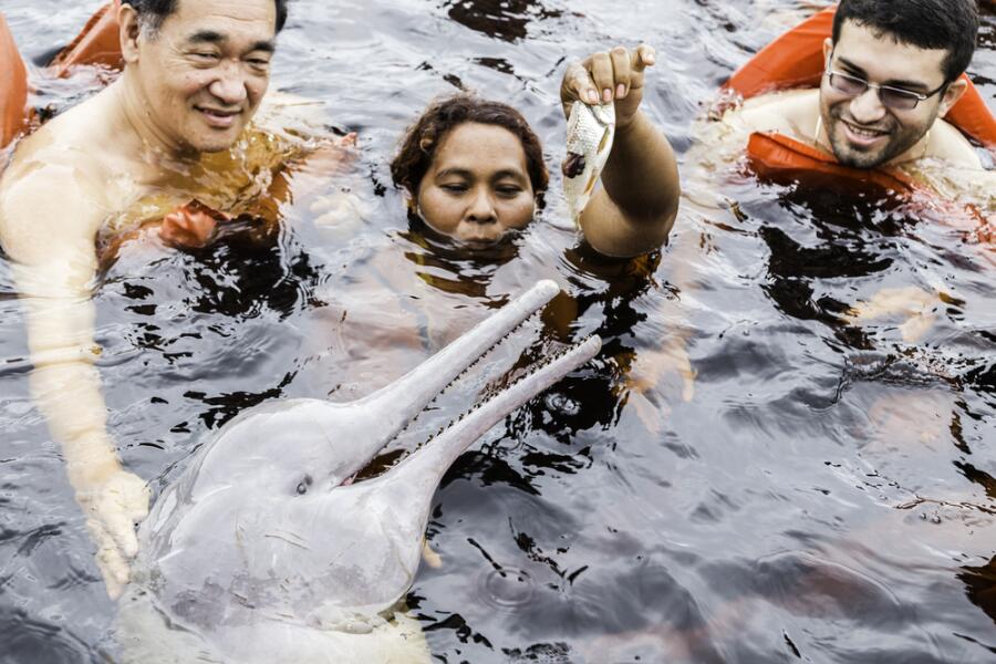 В самой крупной реке мира Амазонке розовым дельфинам места хватает. Но, тем не менее, ведётся борьба за сохранение этого вида. Дело в том, что половые органы амазонского дельфина считаются афродизиаком, и ради наживы охотников на это удивительное животное хватает.