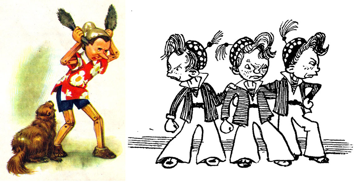 Не отстаёт от Коллоди и детский писатель Николай Носов. В его сказке «Незнайка в Солнечном городе» беспардонные хулиганы-ветрогоны, устроившие беспредел в светлом коммунистическом обществе — это приобретшие человеческий облик два осла и один лошак.