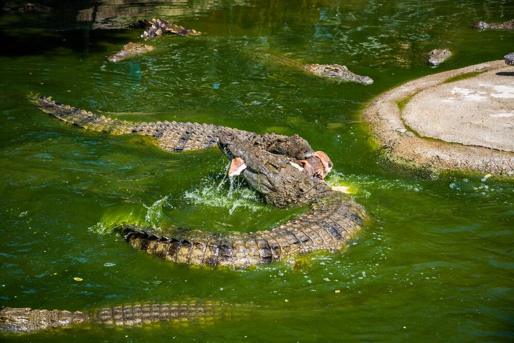 Когда крокодилу слишком уж докучали подобным бесцеремонным обращением, то он проявлял своё недовольство тем, что мог и зашипеть, как утюг, и крутануться резко, и пастью лязгнуть. Что это, мол, за обращение с главным монстром тропиков?! Иной раз такие «показательные выступления» доводили грозного монстра просто до бешенства и весь вид его говорил: «Эх, жалко, что места маловато, а то бы я ка-ак развернулся, да как схватил бы кого-нибудь из вас тоже за хвост!» Зрители же восторженно ахали — им жутко нравился такой экстрим.