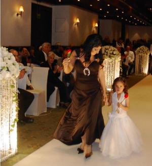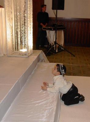 Гостей приглашают в зал с хупой (свадебным балдахином). Первыми по белой дорожке к хупе идут родители жениха, за ними — родители невесты, потом проходит девочка (с мамой), которая несет розочки (в них — обручальные кольца). И вот появляются жених и невеста. Раввин начинает обряд, это его сольное выступление. Надо было видеть и слышать: он выступал как соловей в предрассветный час (к слову сказать, у него был достаточно приятный голос)! Он вел за собой всех присутствующих, произнося первые слова молитв и ожидая ответа зала — и зал следовал за ним хором!