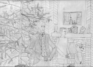 А я вот нарисовал Виньку с Кристофером Робином и Аланом Милном, празднующих Рождество. Маме в подарок...