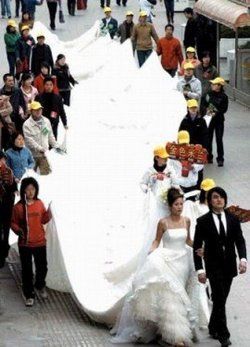 Свежий пример – «шоу» китайской пары из провинции Цзилинь, заявившей на регистрацию рекордов Гиннеса факт использования в свадебной церемонии двухкилометровой фаты (точнее: 2 км 162 м, предыдущий рекорд – 1 км 597 м).