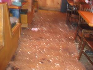 О, нет. Это уж слишком. Перебор. Грязь на полу – минус для заведения общественного питания. Даже если это часть имиджевой программы. Или культуры.