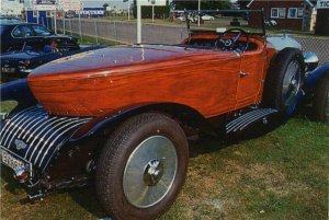 У этой Испано-Сюизы кузов набран из полосок шпона тюльпанового дерева, сбитых медными гвоздиками.