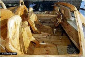 Итальянский мастер Livio De Marchi настолько любит дерево, что все вокруг него сделано исключительно из дерева: дом в котором он живет, мебель, кухонные принадлежности, одежда и даже машины. Он даже плавает на своем спортивном деревянном Ferrari F50 вместо гондолы по речным каналам Венеции.